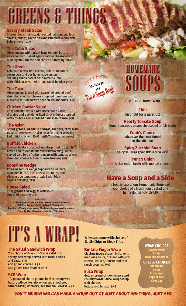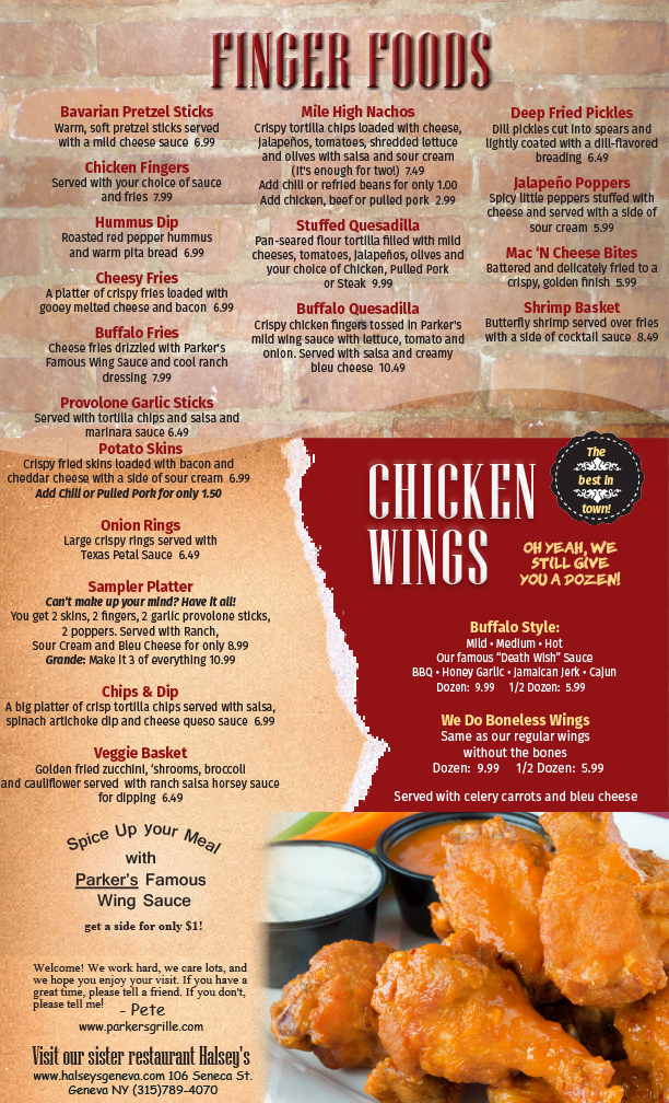 Parker's Grille requested updated menus witch new items and pricing.